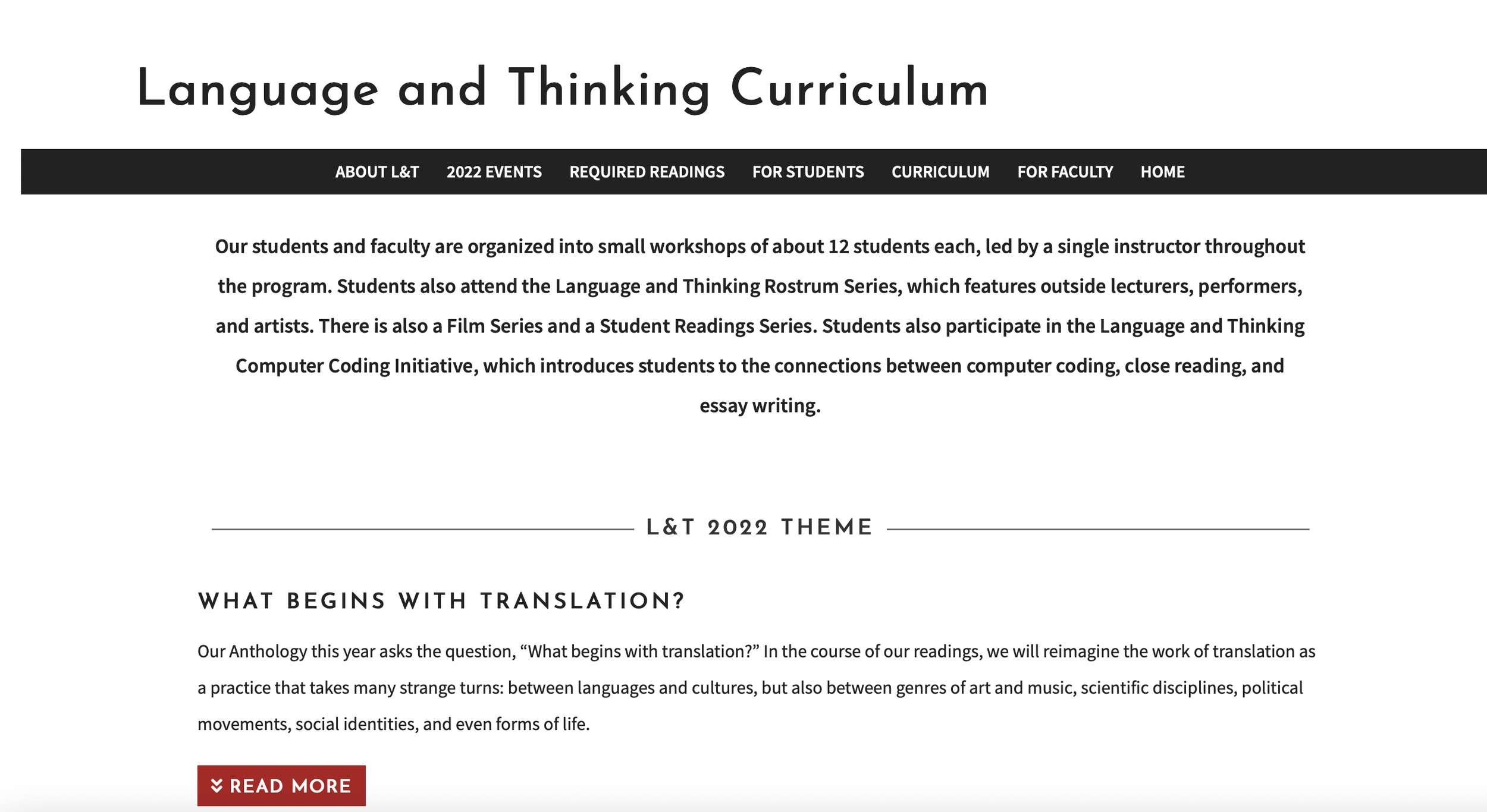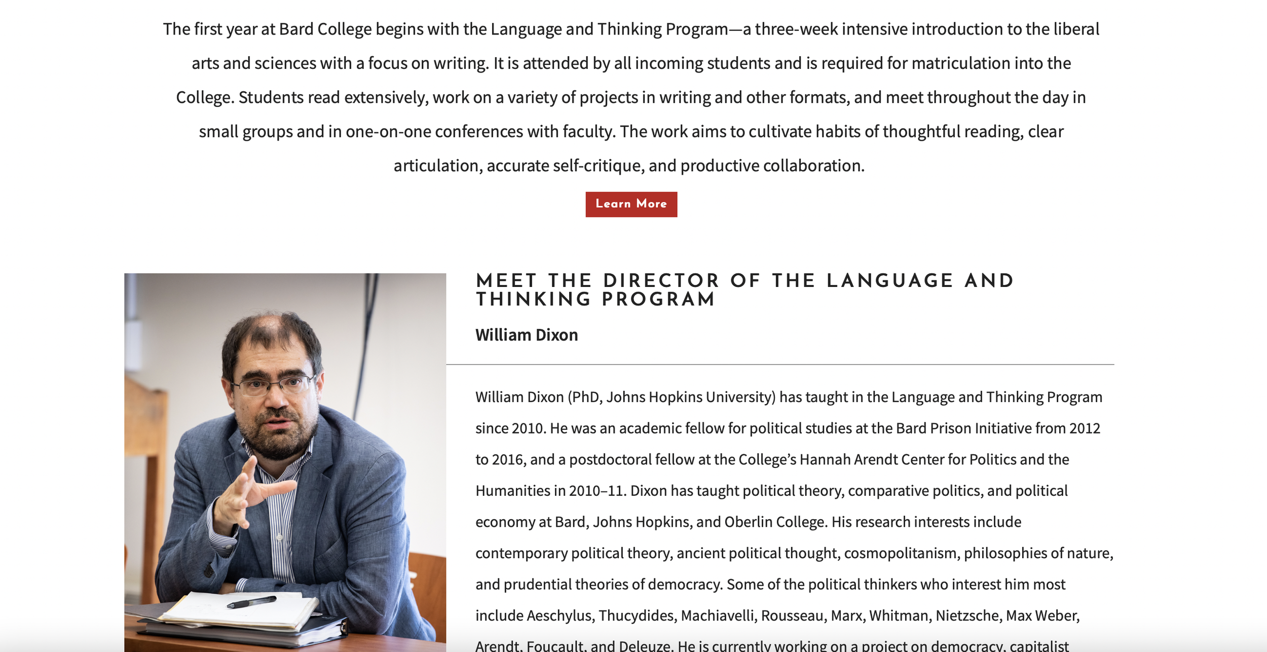 Bard College Institute for Writing & Thinking (IWT): While working for IWT, I managed the Bard College Language and Thinking Program website content. I created long-form copy and microcopy for the site, including CTAs, dropdowns, and buttons. I worked closely with the Bard College graphic designer and communications manager to ensure that the content I created aligned with the College’s brand voice, and adhered to compliance standards.